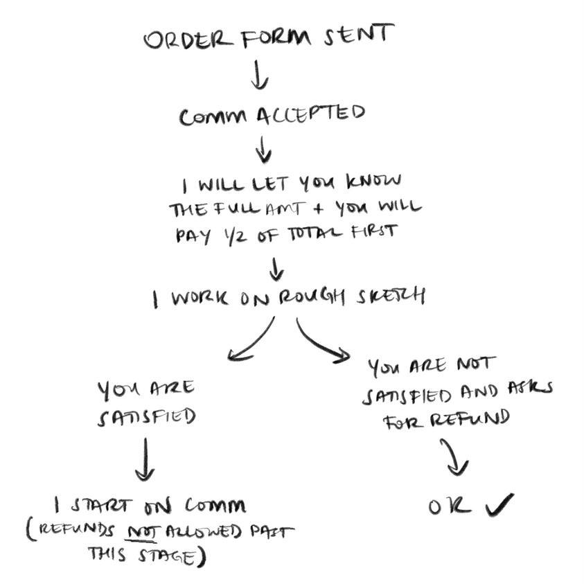 + Refunds are not accepted once the rough sketch stage is confirmed by the comissioner.
